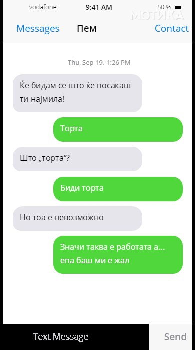 Можете да „изградите“ совршено тело, но не и смисла за хумор. Затоа мажите треба да ги ценат жените кои му приоѓаат на животот на хумористичен начин. Овие 10 пораки сведочат за кретивноста и смислата за хумор на понежниот пол. Забелешка: Пораките се преведени.