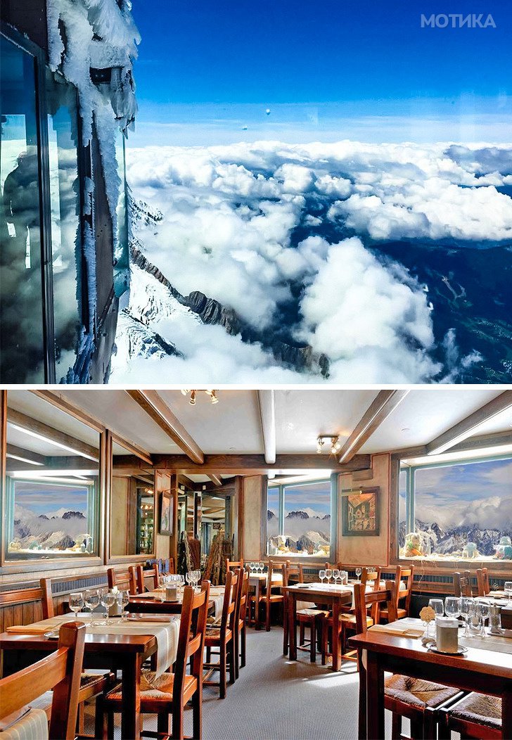 Ова е прекрасен ресторан со неверојатни погледи. Можете да го најдете на 3.842 метри на врвот на француските Алпи. Исто така таму има и хотел каде што можете да преспиете.