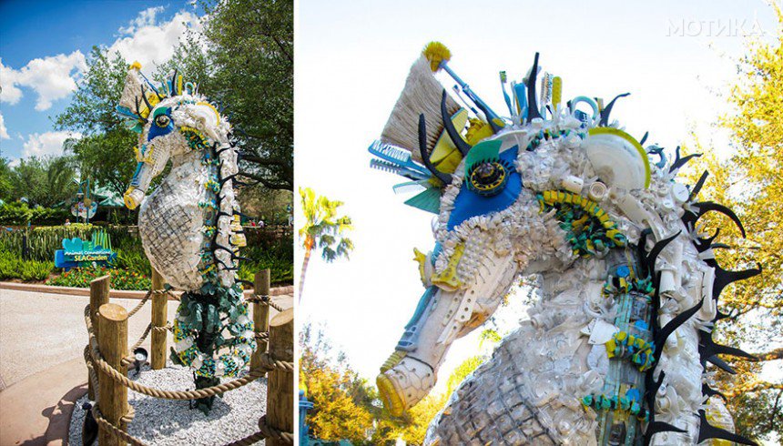 Овие неверојатни, а сепак вознемирувачки скулптури нека послужат како потсетник за претераната употреба на пластиката. Сите тие биле изработени од пластични материјали најдени во морето или на брегот, отфрлена пластика која се нарекува плажен отпад.