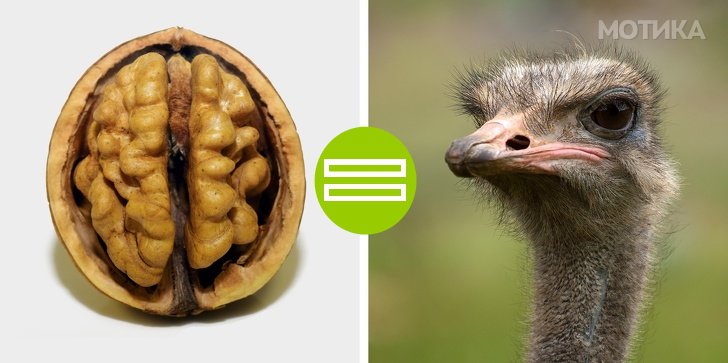 Очите на нојот се споредуваат со топки за билијард. Нивните очи се толку големи што само мозокот со големина на орев може удобно да се почувствува во черепот. Масата на мозокот на ноевите е повеќе од 2 пати помала од масата на очите.