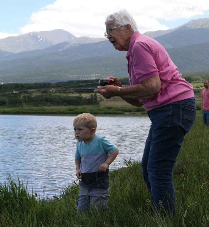 „Денес, мојот 3-годишен син и неговата 89-годишна прабаба ги здружија силите за да ги фатат своите први риби.“