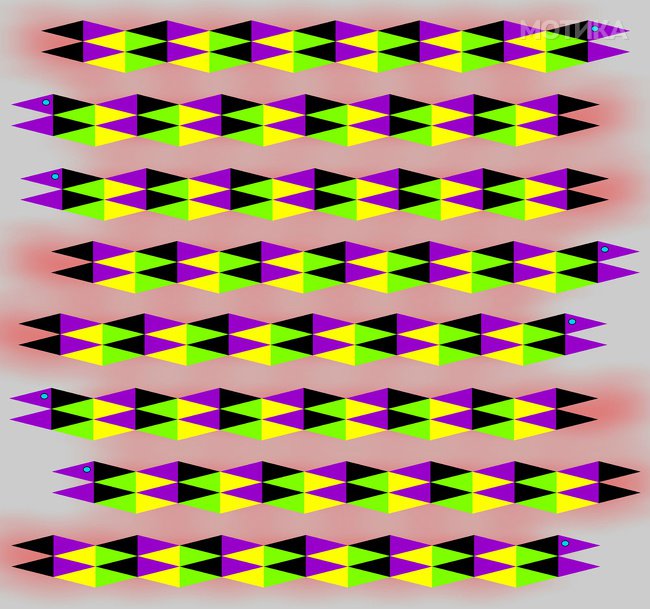 Гледајте во овие зелени линии и движете ја главата. Дали се движат?