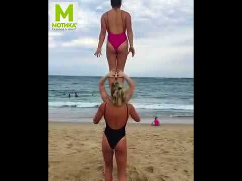 3 девојки прават кула на плажа