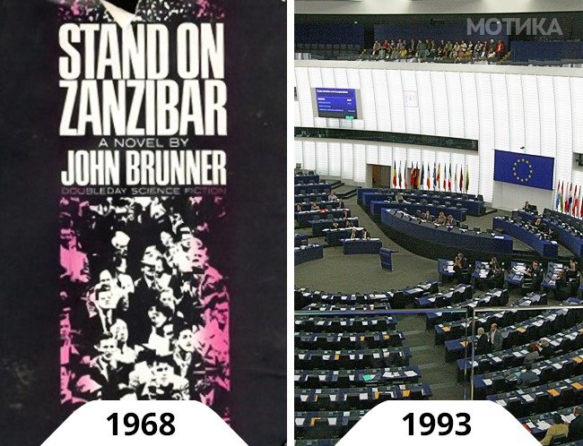 Во 1968 година писателот на научна фантастика, Џон Брунер, го објавил својот роман Stand on Zanzibar. Заплетот ја опишува Европската унија, која официјално била формирана во 1993 година.