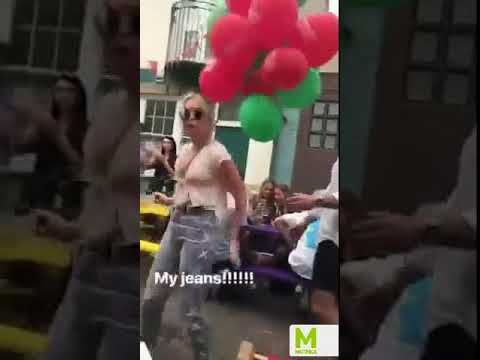 Фармерките не го издржаа притисокот од облините на плавушата.