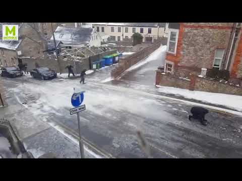 Снежното невреме и студот создадоа опасни поледици по улиците, а еве како луѓето се движат надвор.