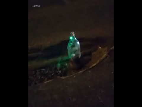 Направил едноставен изум во пластично шише од Кока Кола. Видеото е снимено на улиците на рускиот град Ростов на Дон.