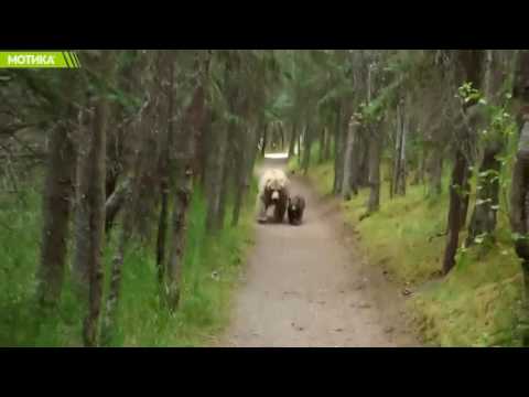 Крвта да ти замрзне во вените! Човекот е искусен и реши да оди наназад, без нагли движења, но мечињата и мечката постојано го следат.