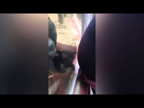 Бремена мајка се трогнала до солзи кога орангутан нежно го бакнал нејзиниот стомак преку стаклената преграда на неговиот кафез во зоолошката градина. Морган Кол Абот од Ипсвич, Англија, била во посета на зоолошката градина Колчестер во Есекс, кога приматот Раџанг се наведнал да го бакне нејзиното стомаче. 48-годишниот примат бил снимен како се обидува да го погали нејзиното стомаче преку стаклото, при што се чинело дека се насмевнува на идната мајка.