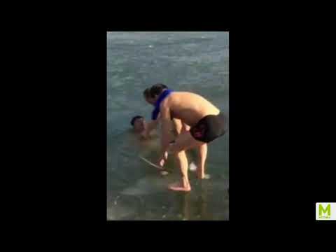 Будала Кинез реши да поплива малку под мразот и да излезе точно кај дупката, но малку промаши