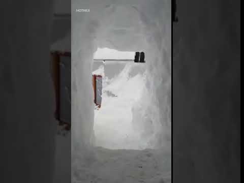 Човеков на пример морал да ископа цел тунел во снегот, за да може да излегува од дома.