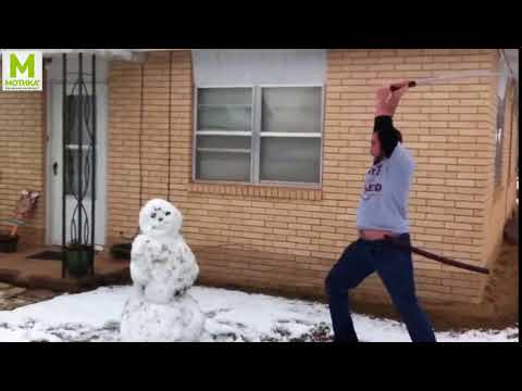 Демонстрација на моќта на самурајскиот меч со помош на снешкото во дворот