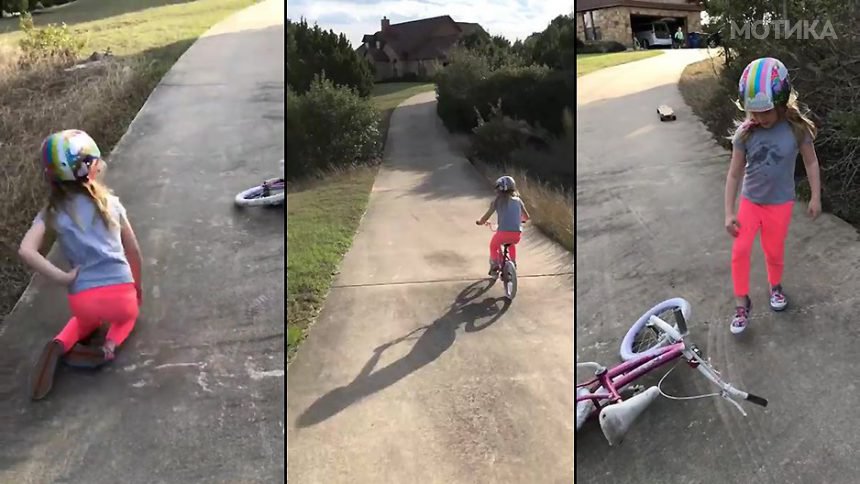 Девојче, нареден пат кога ќе возиш велосипед, да си носиш камења во џебовите!