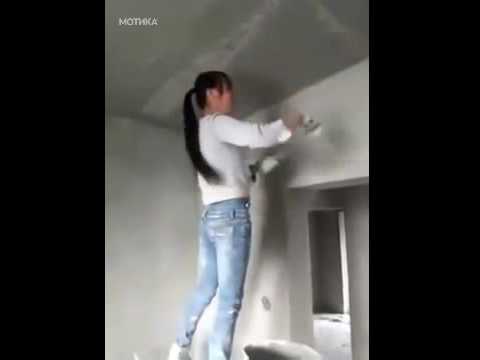 Девојката е опасно добар мајстор за глетување ѕидови и тавани