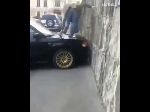 Наеднаш наиде на паркиран автомобил, но таа го реши на шампионски начин. Ако сите пешаци се однесуваат вака, ниту еден возач нема повеќе да помисли да паркира на тротоар.