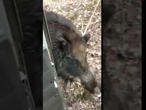 Обично дивите свињи се многу нервозни и опасни, но оваа видела луѓе и си дошла на чекање.