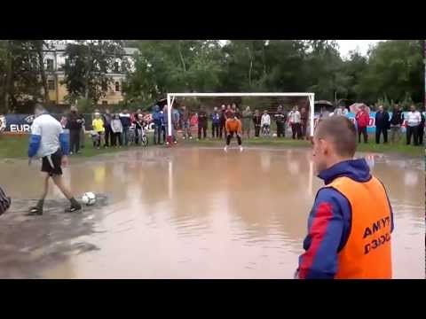 Вода нема само на белата точка и онаму каде што скока голманот. Инаку ова е финалето на 15-тиот традиционален летен фудбалски турнир „Лига на градот на младите“ кој се одржа во градот „Космомолск на Амур“.