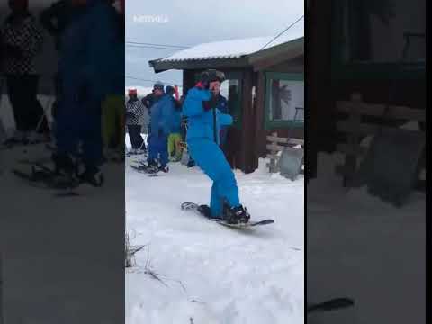 Се опремиле тројцата со нови даски за скијање, го фатија ски-лифтот и шоуто може да започне.