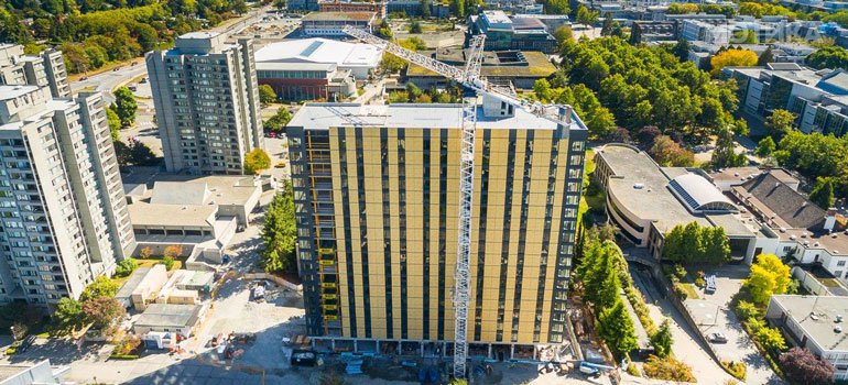Проценките објавени од страна на Советот за Зелено Градење на САД велат дека дури 39 проценти од емисиите на јаглерод во САД се резултат на изградбата на згради и нивната употреба. Дрвото е далеку полесно од челик, што го олеснува транспортот до градилиштето, а темелите за градбите не мора да бидат толку длабоки. Овие два фактори ќе служат за намалување на емисиите.
