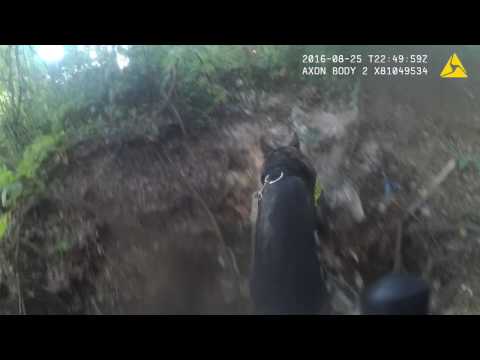 Во неверојатното видео може да се види како полицаецот е предводен од неговиот моќен партнер, Титан, кој успеал да го фати мирисот на Вилсон, додека над нив лета и полициски хеликоптер.