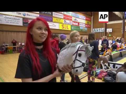 Финските девојчиња се натпреваруваат на шампионатот во скокови со коњчиња играчки