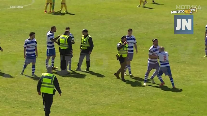Фудбалерите го „освестија“ судијата кој наседна на трикот на противничкиот фудбалер