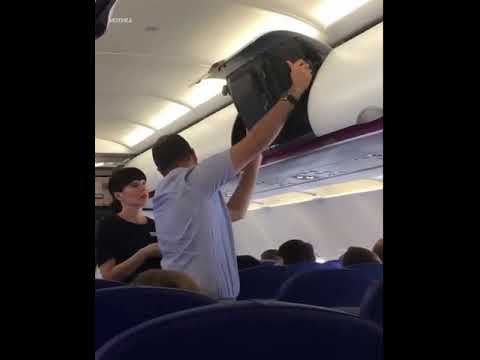 Проблемот кој треба да го реши е како да си го смести куферот во авионот? Среќа што стјуардесата дојде да помогне, инаку ќе го скршеше авионот :).