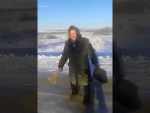 Баба Раиса Јапарова е пензионерката која наместо да дреме по цел ден пред печката, решила да им помогне на другите луѓе посипувајќи го замрзнатиот пат со песок.