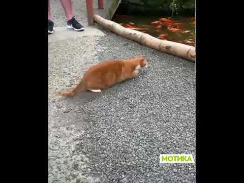 Мачето знае дека рибите се само за гледање, но знае и како да го искористи тоа за да си го наполни стомакот.