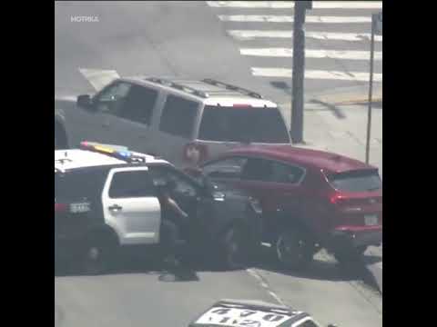 Возачот на теренското возило КИА не сакал да застане, па полицајците од Лос Анџелес решија да го запрат на нивни начин.