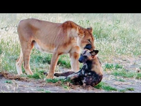 Кучето кое немало среќа да му побегне на лавот не дава никакви знаци на живот, но останатите кучиња се врткаат околу лавот и го провоцираат.