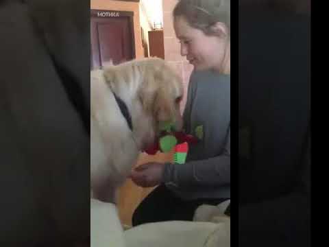 Видеото е интересно од два аспекти: Колку се паметни кучињата и колку е хигиенска целава работа.
