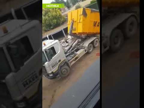 Камионот си има механизам за товарење контејнери, но некој претерал со полнењето.