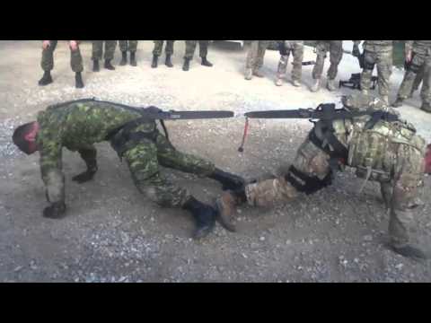 Ова не е само тест на сила, туку и тест на издржливост. Американецот има повеќе опрема на себе, што го прави потежок, но од друга страна пак Канаѓанецот мора да влече потежок човек.