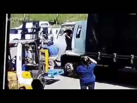 Кавалерот реши да ѝ помогне на дебелата жена да се качи во камионот