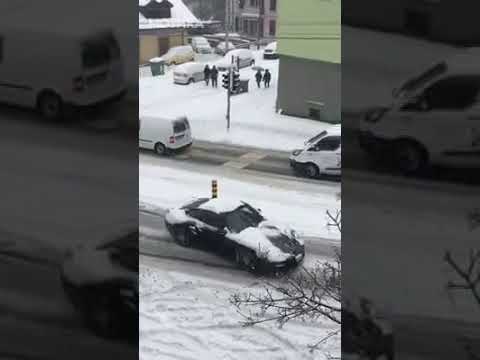 Возачот на Поршето изгледа не сфатил дека летните гуми не се за зимно време, а особено не за снег.