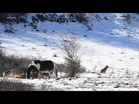 Волците чекаа да „намирисаат“ страв па да нападнат, а коњот… го зачеша грбот :).