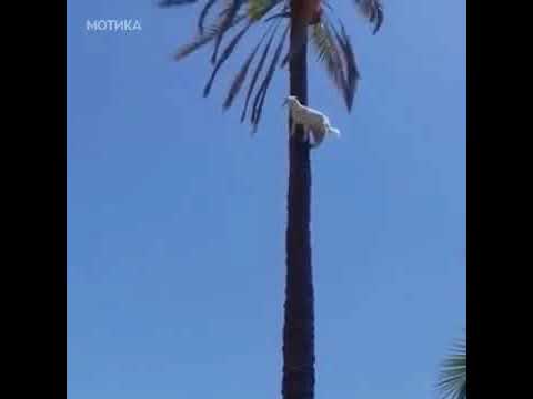 Знаевме дека козите се качуваат по карпи како вистински алпинисти, но оваа се надмина себе си во желбата да дојде до свежа храна.