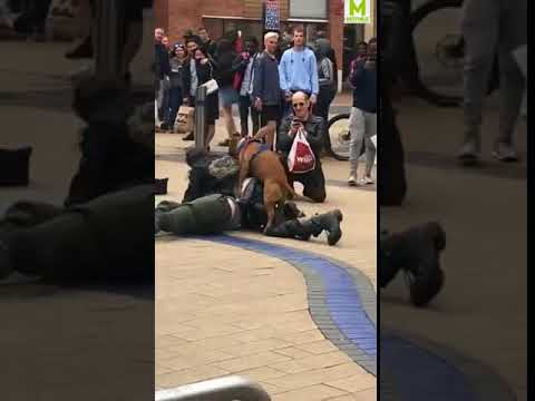 Кучето користи шанса при улична борба на двајца пијани