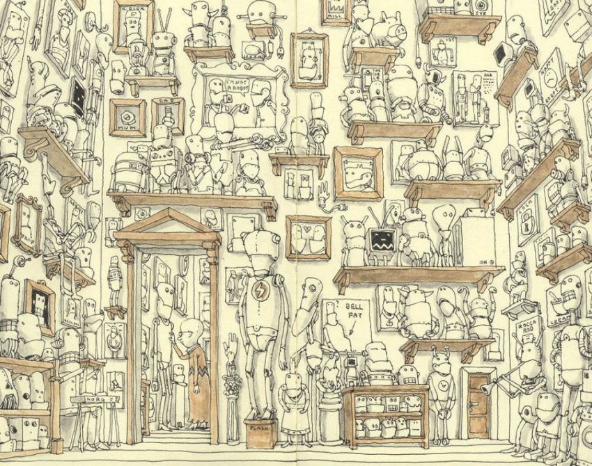 Матиас Адолфсон е шведски уметник и илустратор кој има пасија за детали. Неговите дела можете да ги гледате со часови и постојано да наоѓате нови и нови интересни работи. На своите уметнички дела тој создава по цел еден сложен свет само со туш и со водени бои.