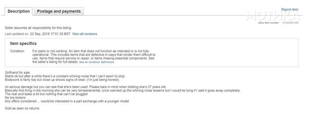 Дејл Ликс од Англија решил да ја стави својата девојка на eBay и да види колку луѓето ќе понудат на аукцијата. Но, тој не очекувал дека приказната ќе се одвива во овој правец.