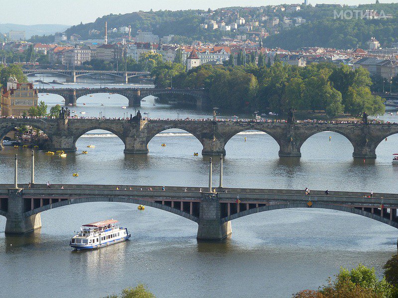 Прага е позната како „град на сто кубиња“, поради своите многу кули со златни врвови и црковни кубиња од средновековието, но исто така може да се нарече и град на сто мостови. Во Прага има над триста мостови. Осумнаесет од нив се протегаат преку реката Влтава, а стотици од нив премостуваат помали реки, потоци и долини.