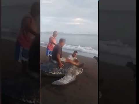 Жители од локално село во Индонезија фатиле желка додека таа се обидувала да положи јајца на плажата Асукери. Станува збор за џиновска кожеста желка, вид кој се соочува со исчезнување, со особено стрмен пад на популацијата забележан во Пацификот.