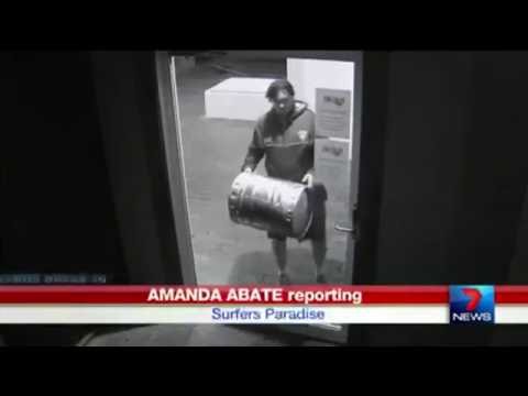 Со празно метално буре од пиво се обиде да направи дупка во вратата и успеа.