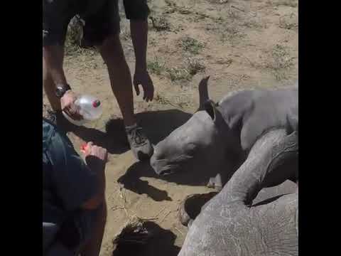 Срцезатоплувачкиот момент кога бебе носорог ја штити својата мајка од човекот кој се обидува да ѝ го лекува повредената нога.