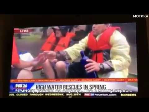 Американската новинарка раскажува што се случува на снимката од поплавите во Хјустон, па колегата мораше да ја корегира :).