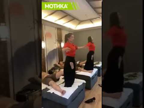 Девојките ги стегаат цврсто стапалата со меѓуножјето, за да им ги истегнат малку нозете на муштериите.