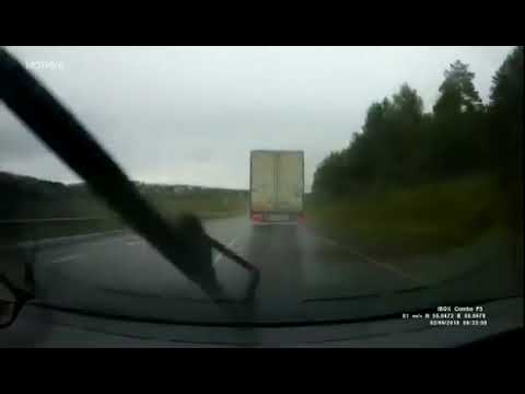 Возачот мајсторски успеа да се спаси и себе си и камионот. Прашање за поискусните возачи: Како треба да се реагира во ваква ситуација? Да се кочи, да се забрзува, во која насока да се врти воланот?
