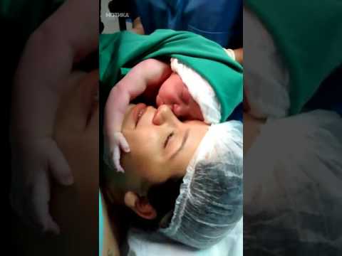 24-годишната мајка Бренда Коелјо вели дека реакцијата на нејзиното бебе ја изненадила дури и медицинската сестра. Бебето-гушкач се роди во болница во бразилскиот град Вила Вела.