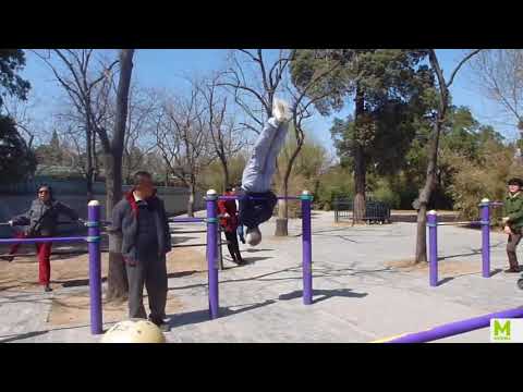 Ова го нема ни на Олимпијада: Кинески дедо вежба своја оригинална вежба на вратило во парк